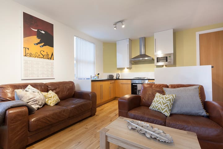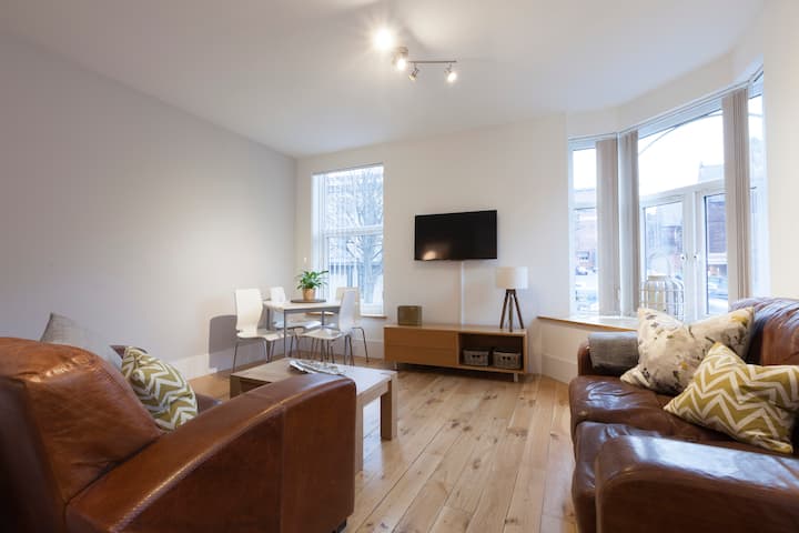 Large bedroom in beautiful bright apartment.