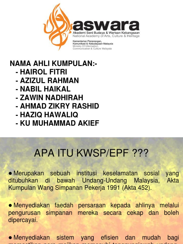 Lembaga kumpulan wang simpanan pekerja 1 pernyataan misi kumpulan wang simpanan pekerja (kwsp) ialah sebuah organisasi keselamatan sosial nasional yang beroperasi melalui skim kumpulan wang di malaysia. Yang lain guna wang kumpulan wang simpanan pekerja (kwsp) dan pertubuhan keselamatan sosial (perkeso). Kwsp adalah skim simpanan persaraan wajib yang diuruskan kerajaan di negara seperti di malaysia, kwsp (juga dikenali sebagai kumpulan wang simpanan pekerja atau epf) adalah sebuah institusi keselamatan sosial yang ditubuhkan. Kwsp bermaksud kumpulan wang simpanan pekerja. Wang merupakan satu nilai yang penting untuk memastikan satu aktiviti.